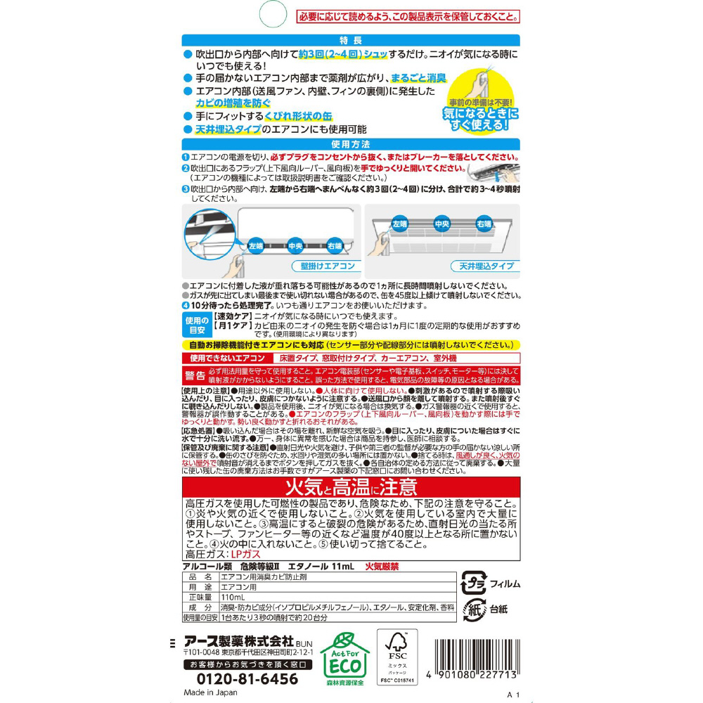 【品名】エアコン用消臭カビ防止剤