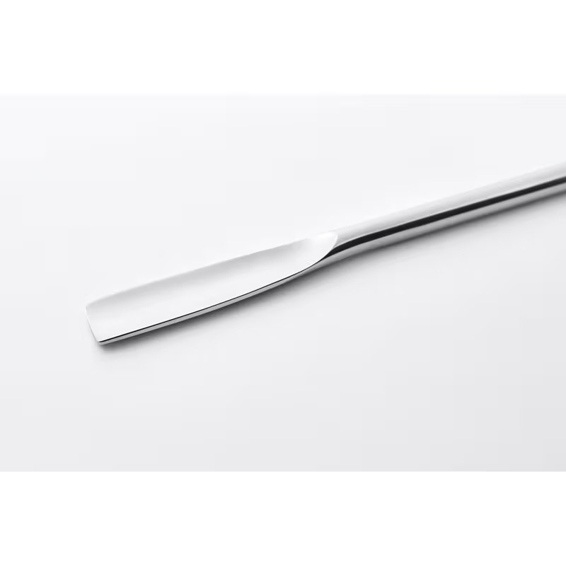 靴べら本体はアルミで構成されていて、先端は鍛造成形にて強度を高め、柄はユーザーに重さを感じさせないよう中空一体成形で製作されています。 重量は軽く、膝を曲げずに使用することができるこの靴べらは、すべてのユーザーにとって生活負担をなくすものになると同時に、玄関周りの景観も美しく保つことができます。