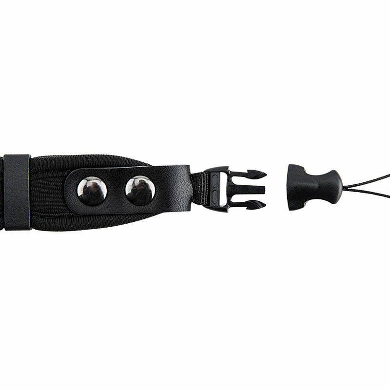 ネオプレーン素材で作られたベルト部分は耐久性があり快適で、長時間の撮影でも手首の疲労を緩和できます。 カメラ取り付け部はナイロン製の糸が組み込まれているのでカメラを安全に保つことができます。 さらにクイックリリースバックルは、ストラップ全体を取り外すことなく、ストラップをカメラから簡単に取り外すことができます。