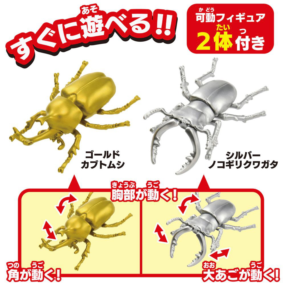 アニアは、ゴールドカブトムシとシルバーノコギリクワガタの2体付き!すぐに遊べます。