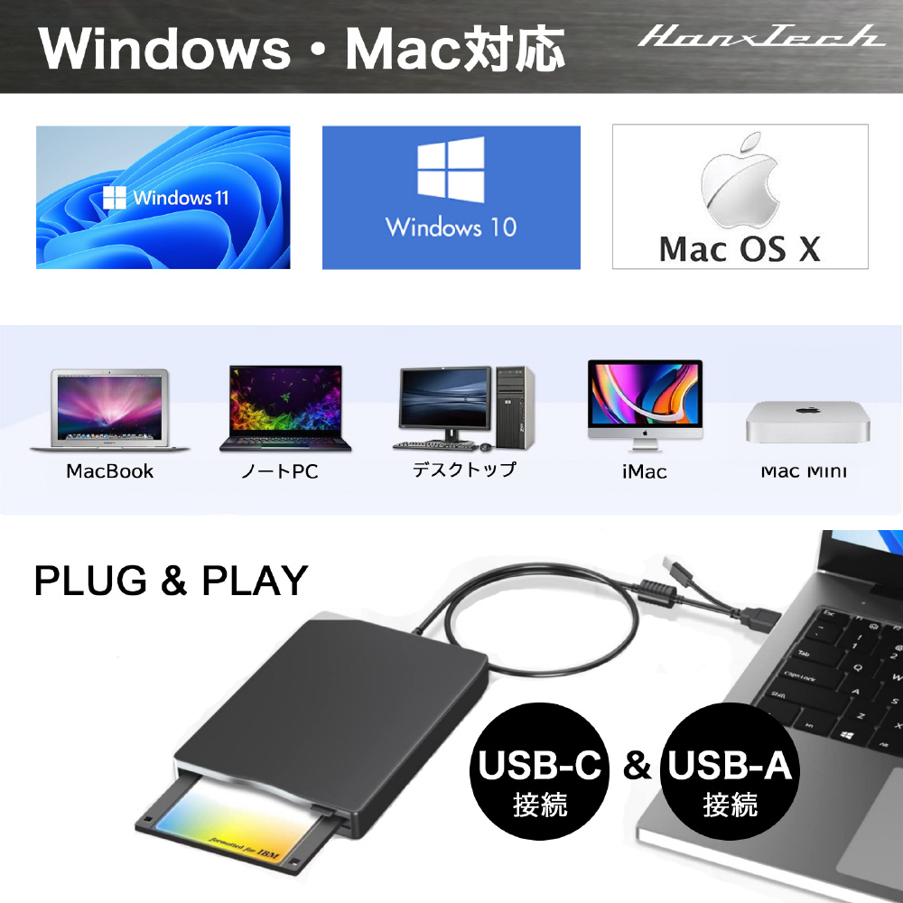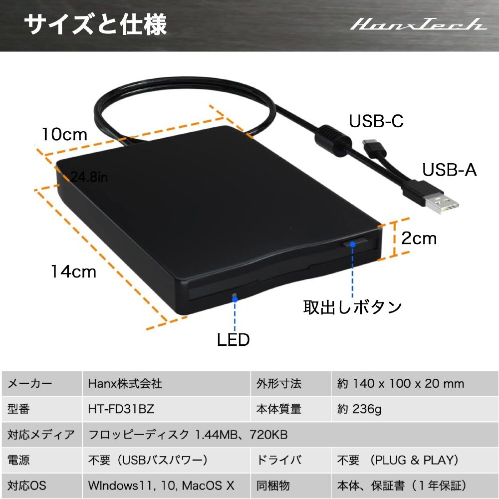 ポータブルフロッピーディスクドライブ (Mac/Windows11対応) HT-FD31BZ