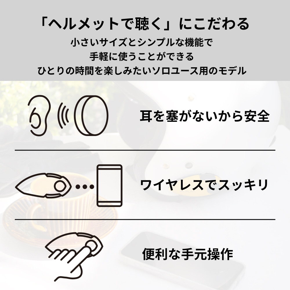スマートフォンの音楽やナビゲーションをヘルメットで聴くことにこだわった、ヘッドスピーカー。