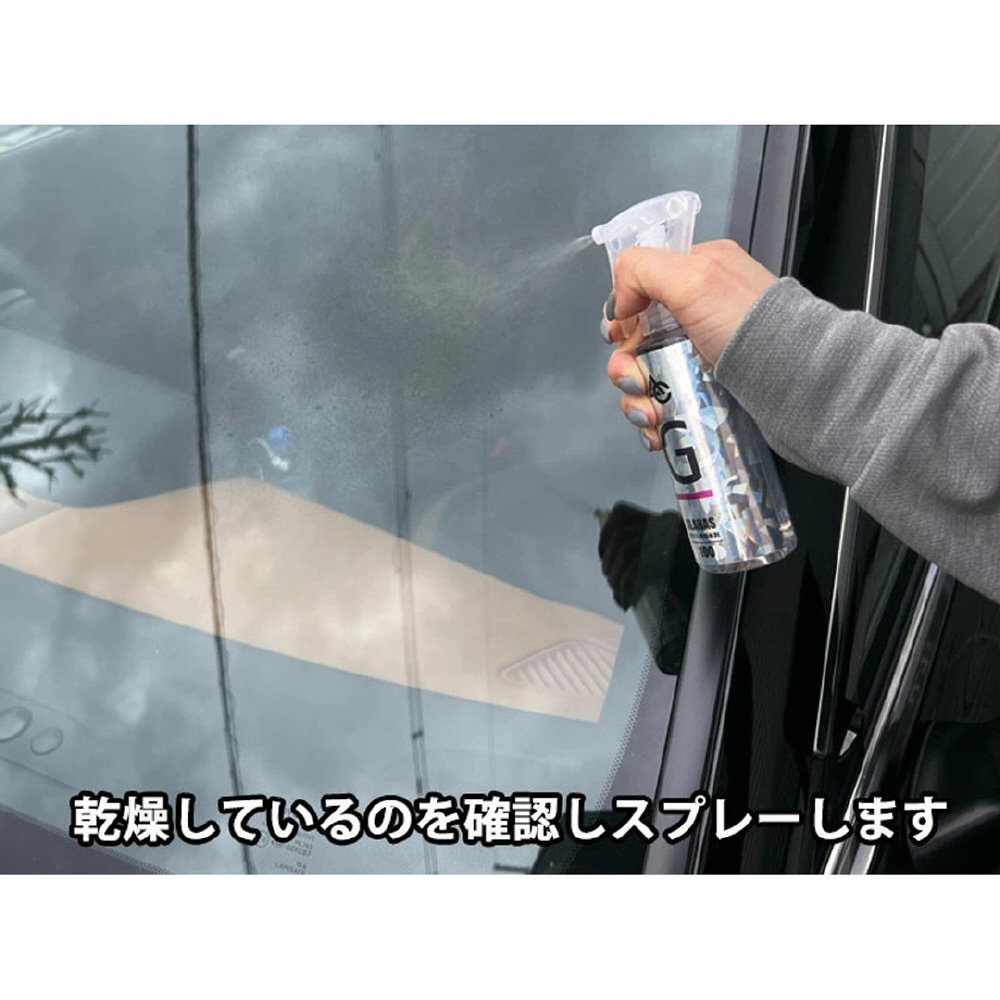 ※ガラス全体を一度にスプレーしないで、フロント、サイド、リアなど部分的に分けて行ってください。
