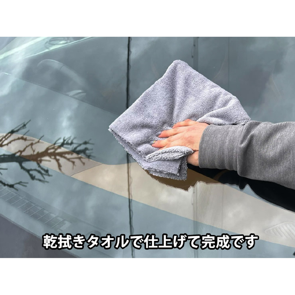 超撥水タイプのガラス用撥水剤です。洗車後に、スプレーして拭き上げるだけで撥水効果を付与します。