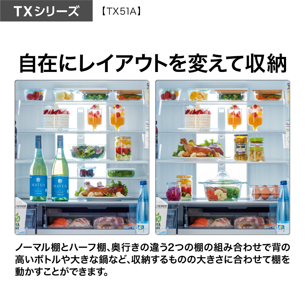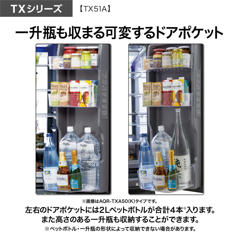 冷蔵庫 AQUA ブラックミラー AQR-TX51A(X) [幅70cm /506L /5ドア /観音開きタイプ /2026年]