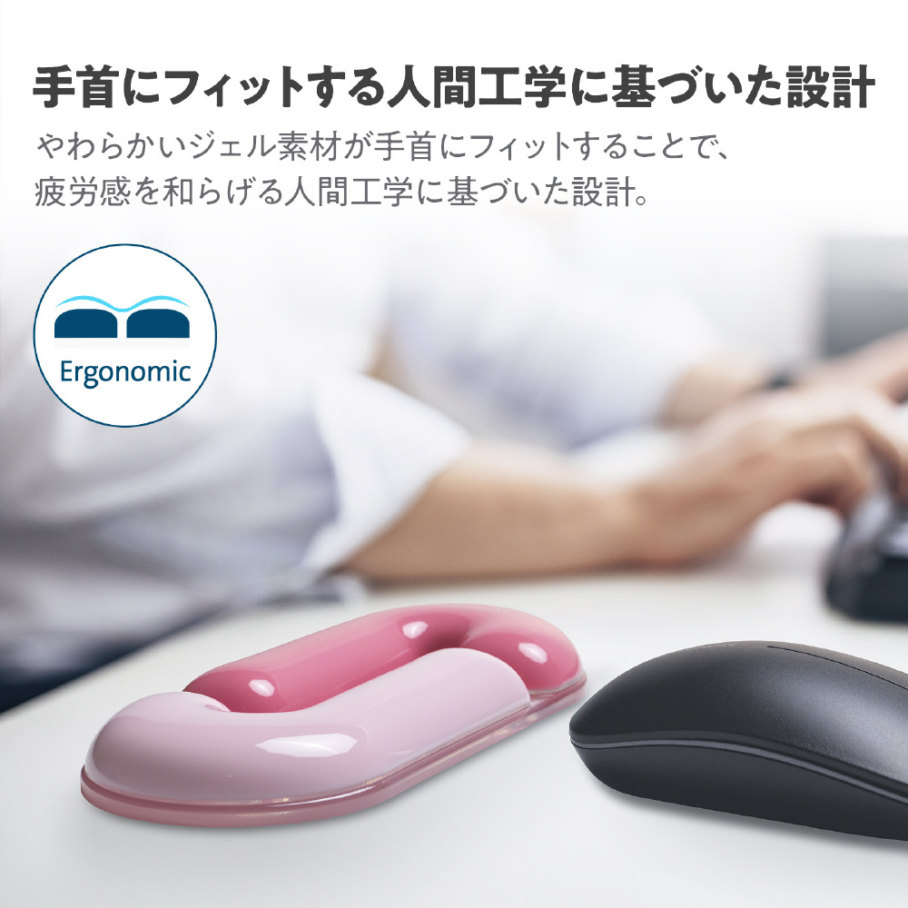 やわらかいジェル素材が手首にフィットすることで疲労感を和らげられ長時間でも快適に使用できます。