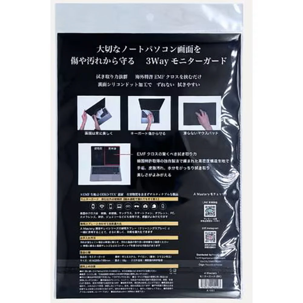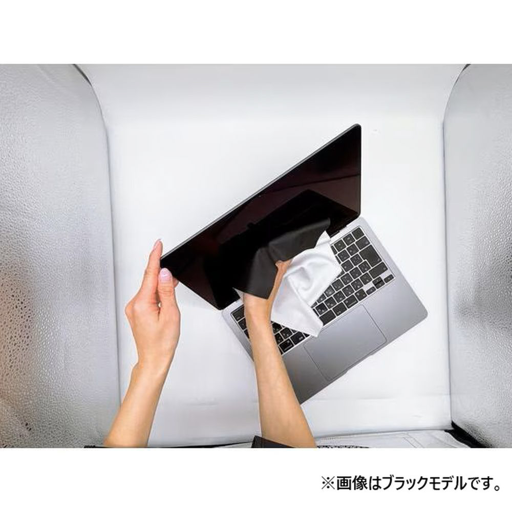 ノートパソコンに挟めばモニター画面をキズや汚れから守り、取り出せばそのまま画面をきれいに拭き取れます。