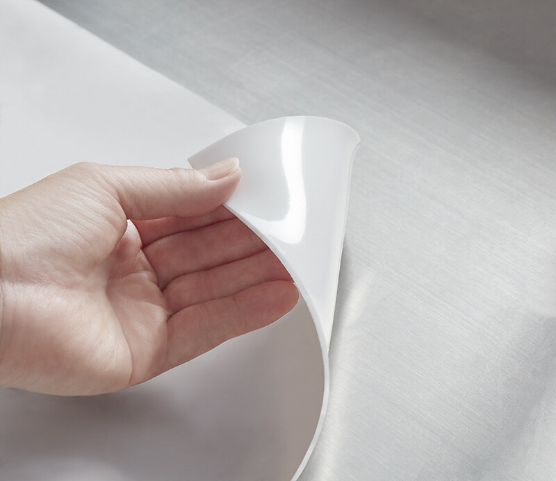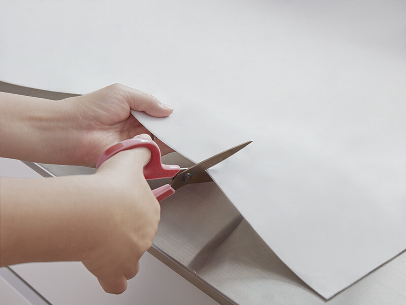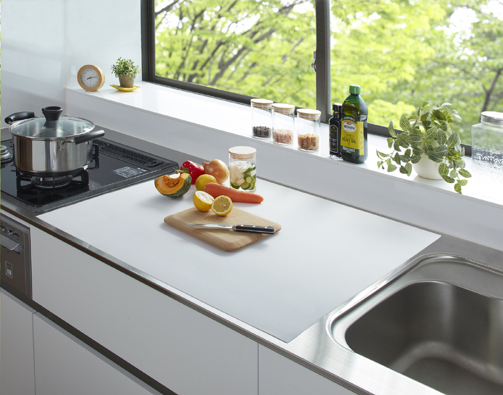 ●調理台に合わせて自由にカットできます。汚れてもサッと拭くだけ