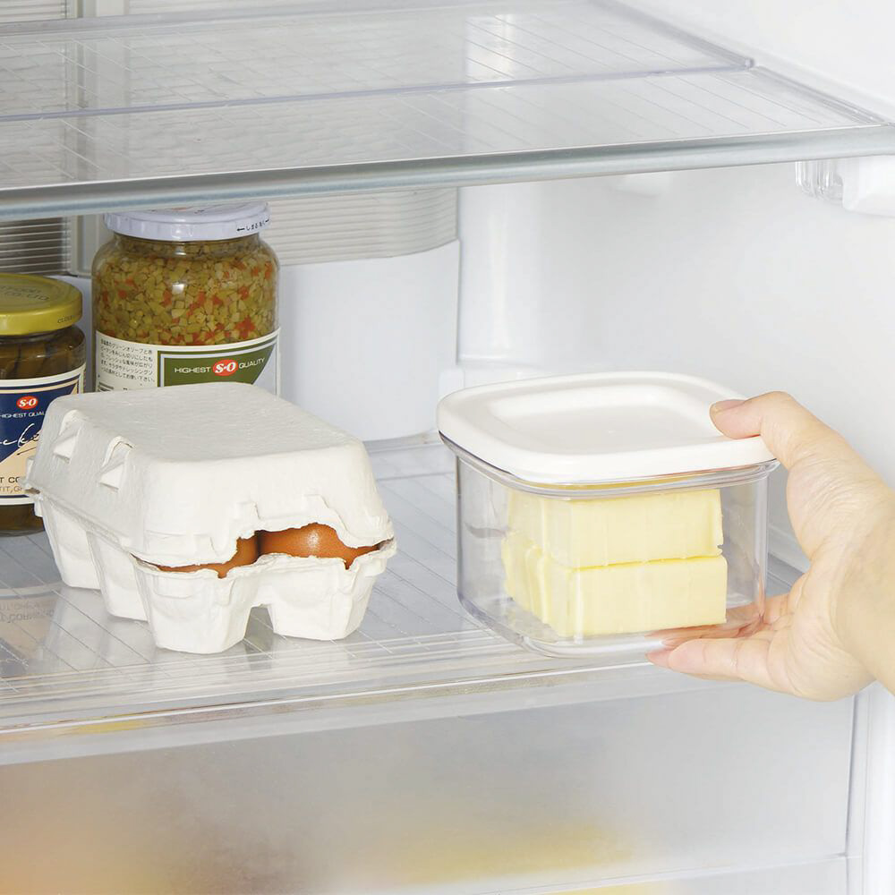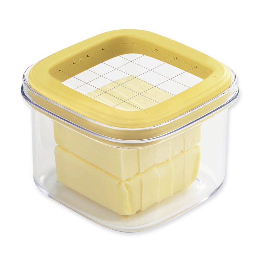 冷蔵庫から出したばかりの冷たくて硬いバターをカットでき、そのまま保存できるケース
