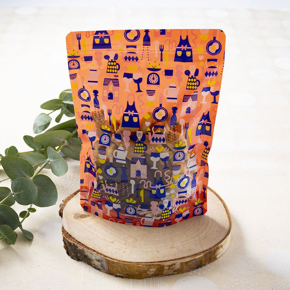 キッチンやインテリアのテイストとして、性年代問わず人気の高い北欧をイメージしてデザインした製菓用品のシリーズ。小分けのプレゼントにぴったりなラッピングバッグ。キッチンツールがたくさん入った「キッチン」柄。軽くて持ち運びがしやすい紙のプレゼント用包装。お菓子づくりの時間をより楽しくするアイテム。