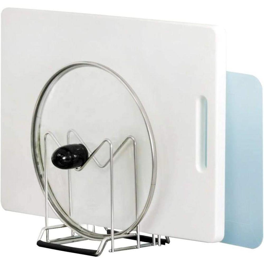 シートまな板、プラスチックまな板、木製まな板や鍋蓋が収納できるスタンドです。ゴム足付きでガタつかず、シンクを傷つけません。