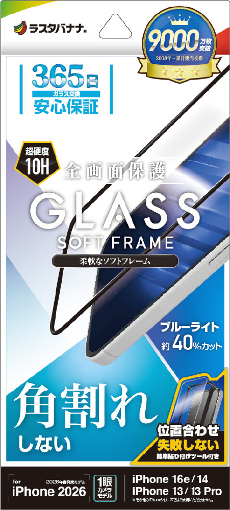 iPhone 17e/16e/14/13/13Pro フィルム ソフトフレームガラス ブルーライトカット 治具付 SE5284IP6E