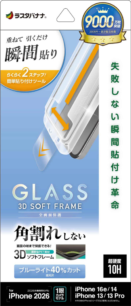 iPhone 17e/16e/14/13/13Pro フィルム 貼付革命 ソフトフレームガラス ブルーライトカット MTK5300IP6E