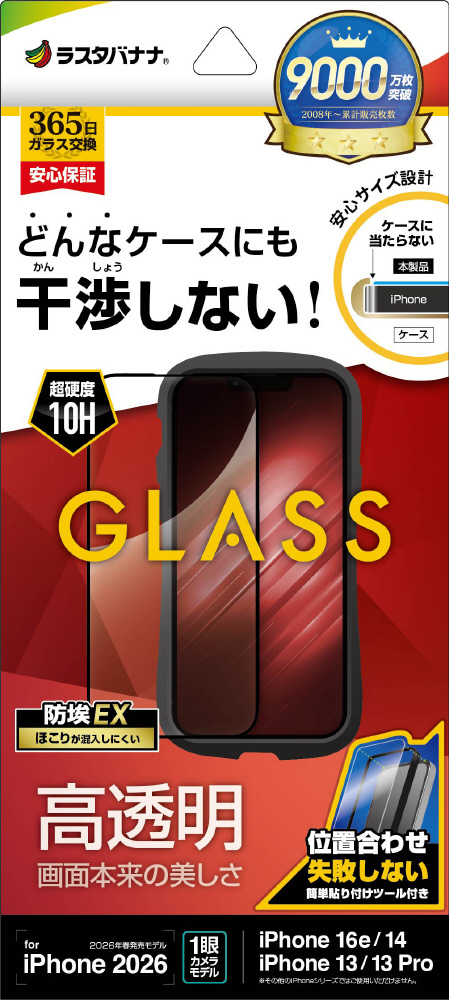 iPhone 17e/16e/14/13/13Pro フィルム 絶妙設計ガラス 光沢 治具付 ZS5301IP6E