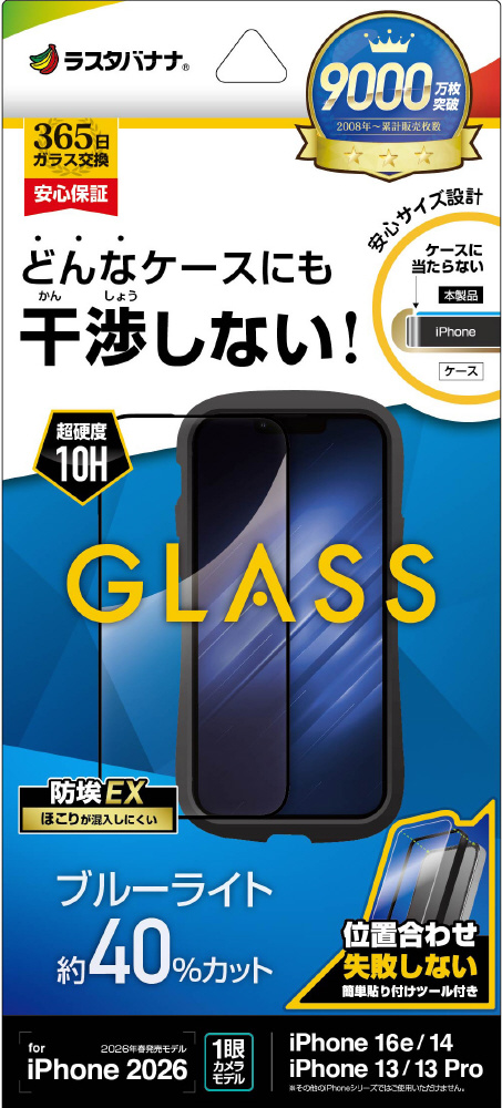 iPhone 17e/16e/14/13/13Pro フィルム 絶妙設計ガラス ブルーライトカット 治具付 ZS5302IP6E
