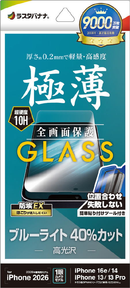 iPhone 17e/16e/14/13/13Pro フィルム ガラス 薄型ブルーライトカット 治具付 GST5292IP6E