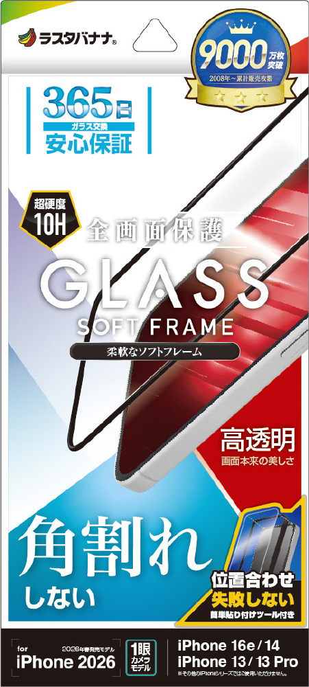 iPhone 17e/16e/14/13/13Pro フィルム ソフトフレームガラス 光沢 治具付 SG5283IP6E