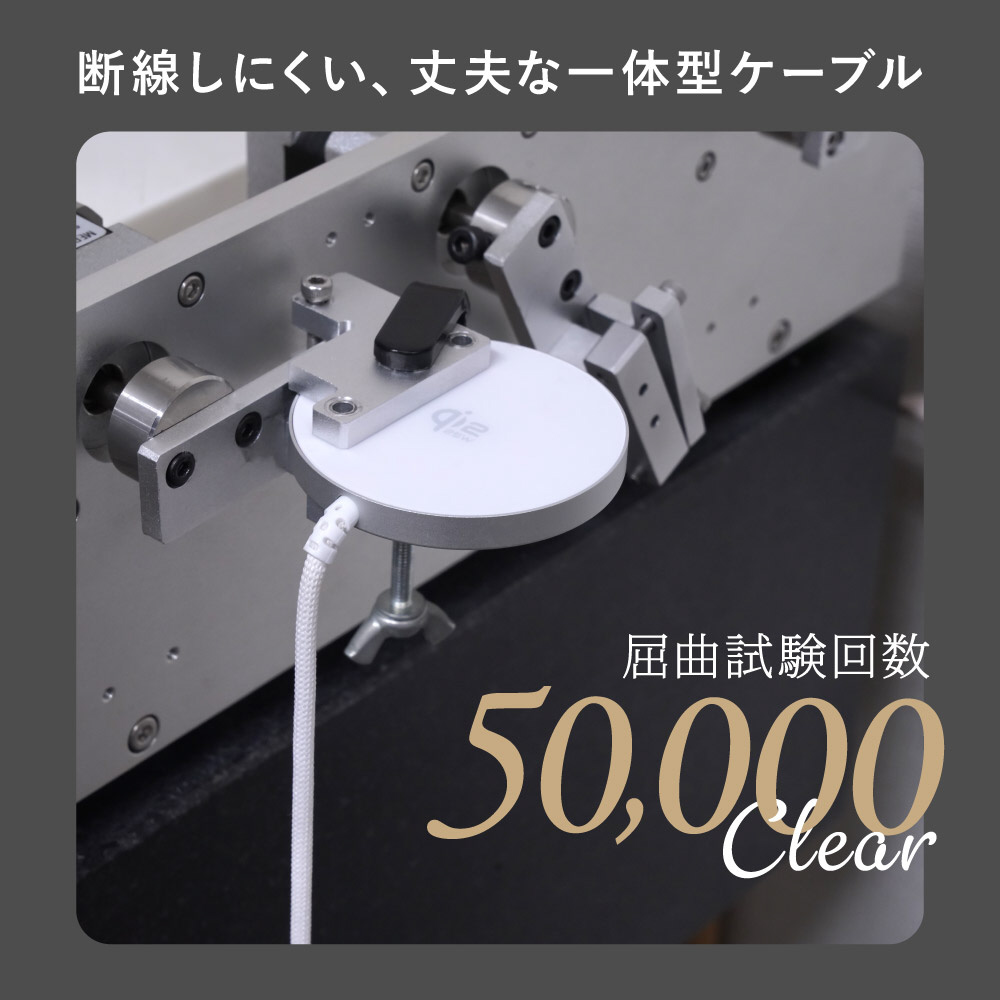 マグネット面とケーブル部分は、弊社独自の厳しい条件下で5万回の屈曲試験を行っても断線が見られなかった耐久性を誇ります。
