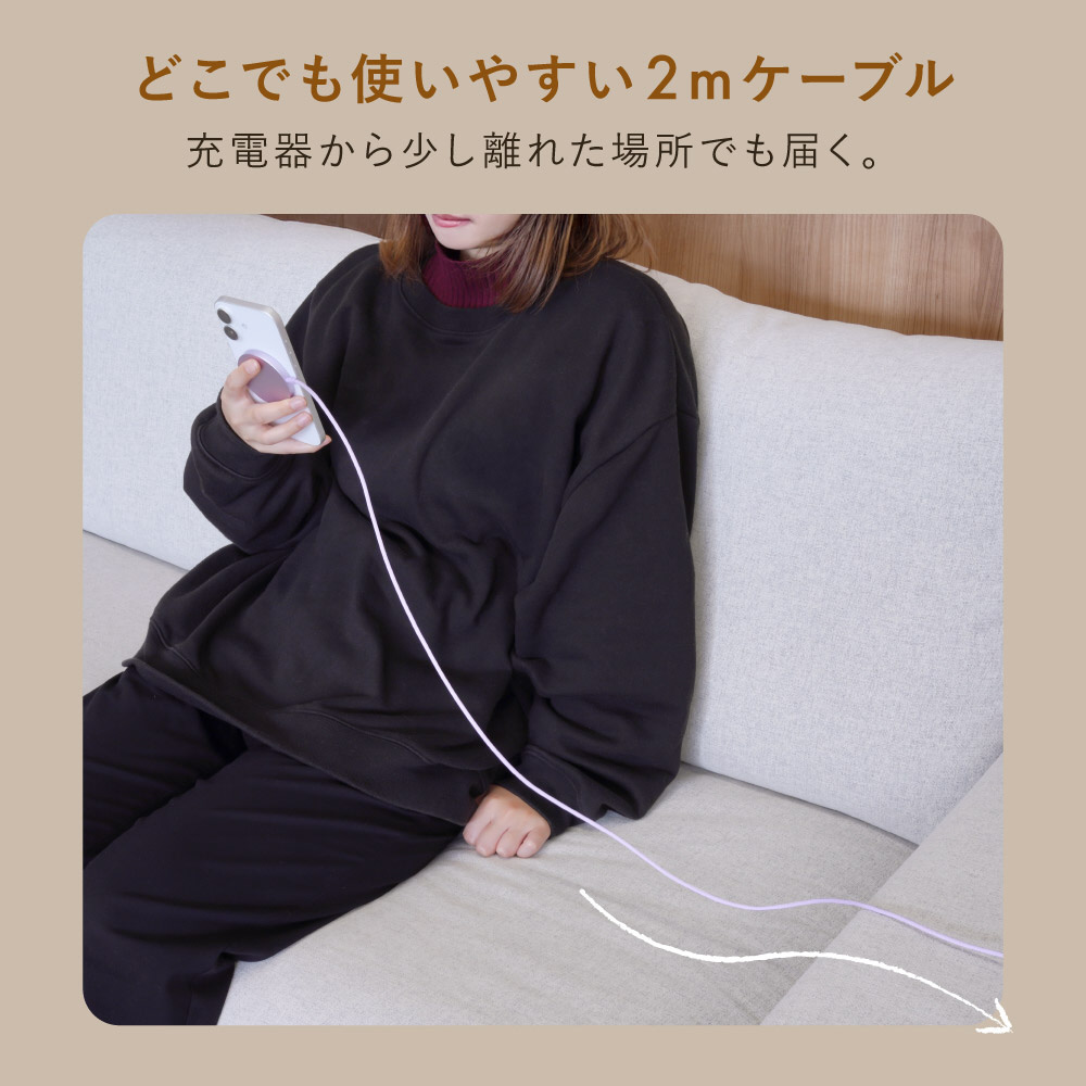 ソファやベッドなどのコンセントから少し離れた場所や、広めのデスクで充電をするときにおすすめの長さです。