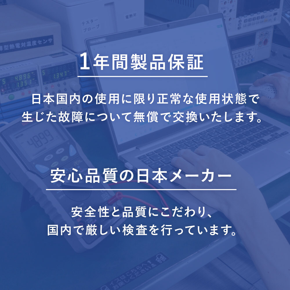 ご使用中に万が一不具合などが発生した場合、保証期間内であれば無償で交換を保証いたします。
