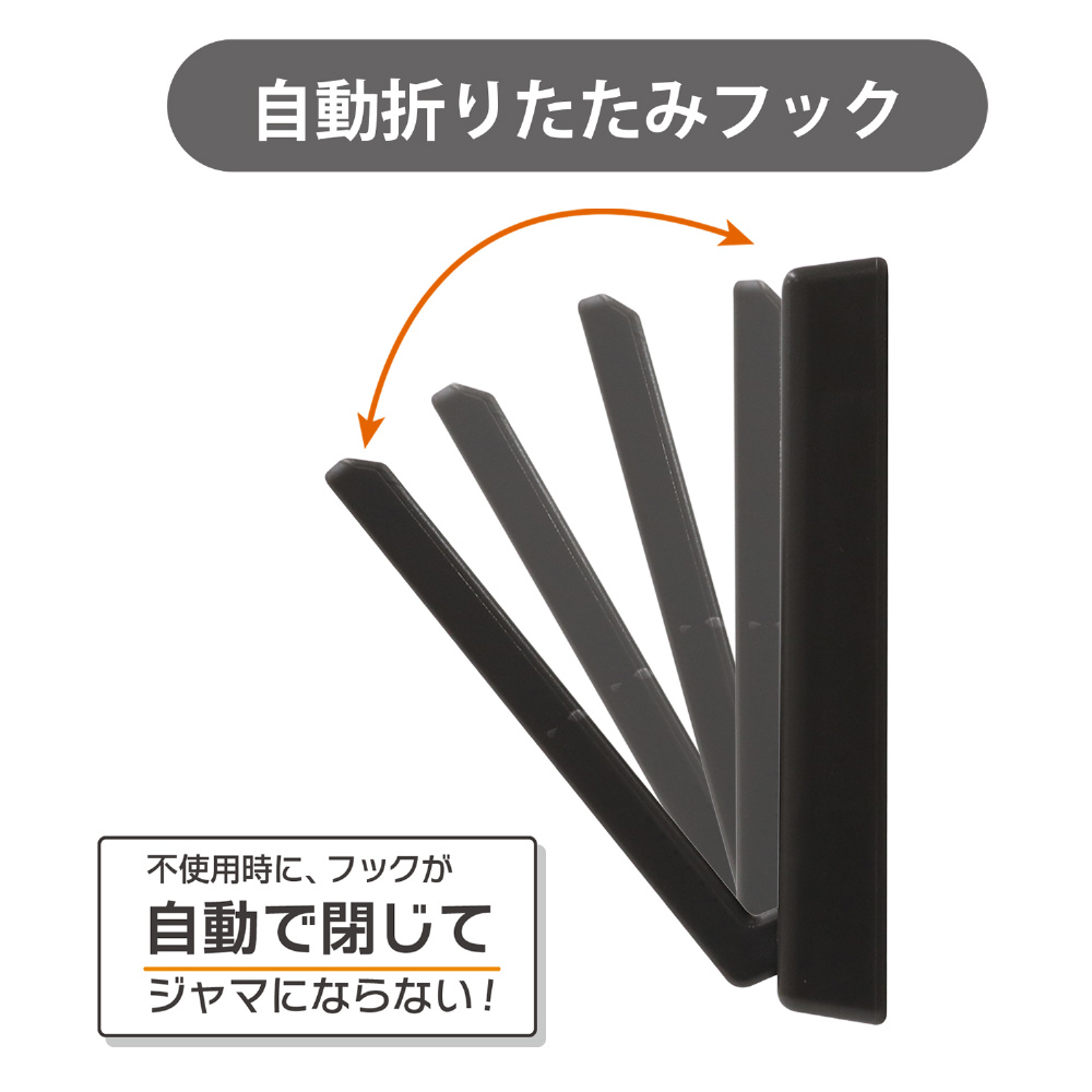 不使用時はフックが自動で閉じて、場所を取らない!
