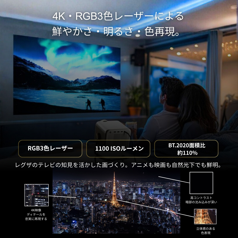 ◆高解像度・高色純度・ コントラスト感・立体感レグザクオリティの画作りを再現【4K×RGB3色レーザー光源】