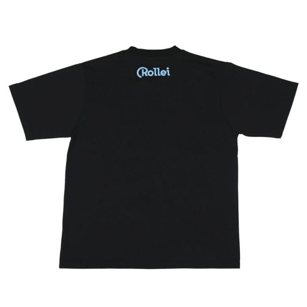 胸元にROLLEIFLEXの三角ロゴをワンポイントで配置。背中にもクラシカルなRolleiロゴがプリントされています
