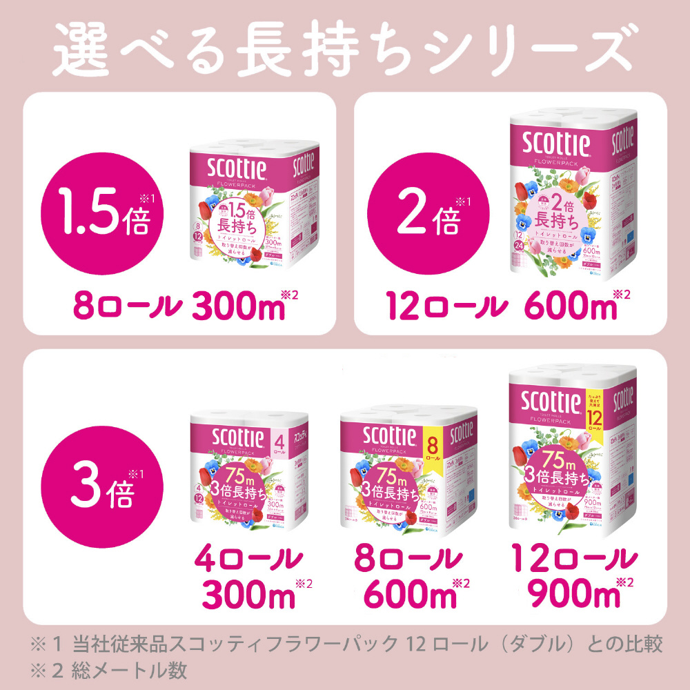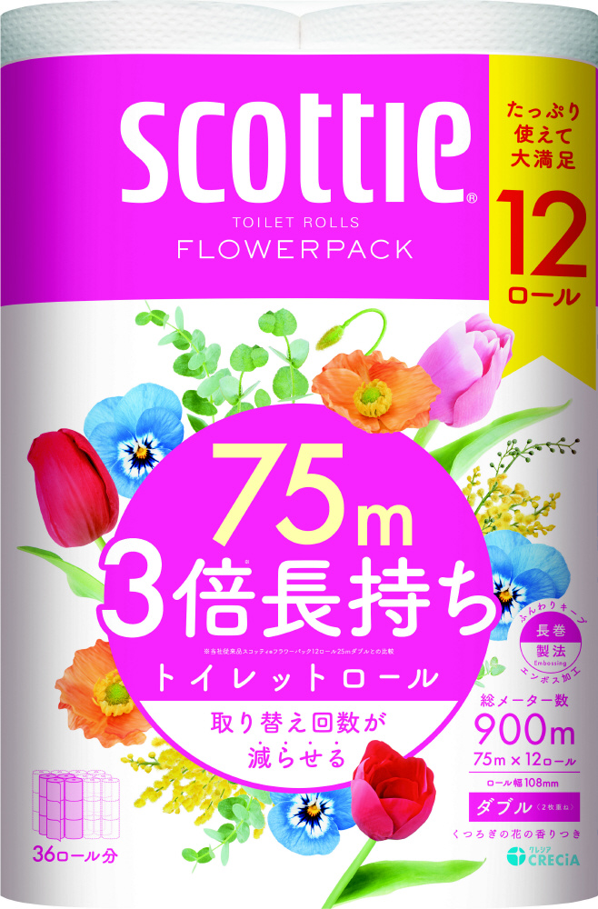 スコッティフラワーパック 3倍長持ち 12ロール ダブル
