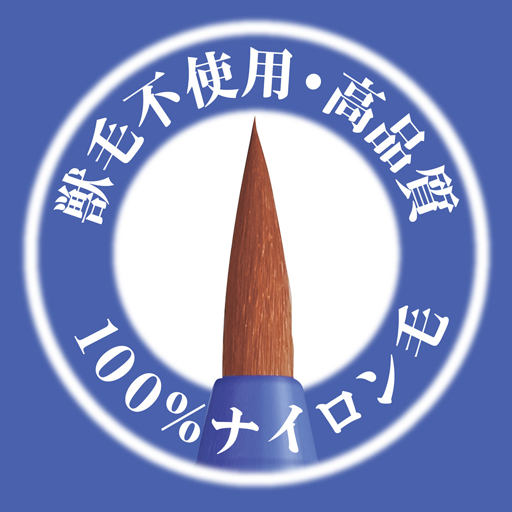 独自製法の特殊毛材を使った、水ふくみとコシの強さのバランスが良い画筆です。軸にすべり止め、ころがり止め付き。 水彩えのぐ、アクリル系えのぐ、両方使えます。