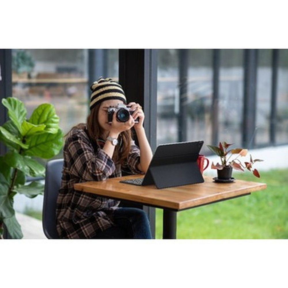 超薄型で軽量なOntheGo(TM) キーボードアンドスタンドは、コンパクトに折りたたむことができ、バッグへ簡単に収まります。