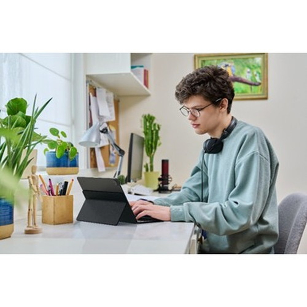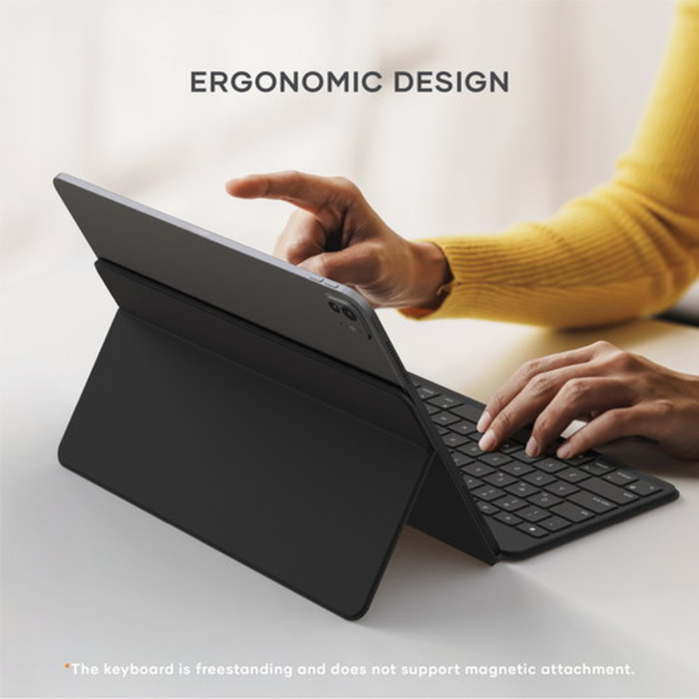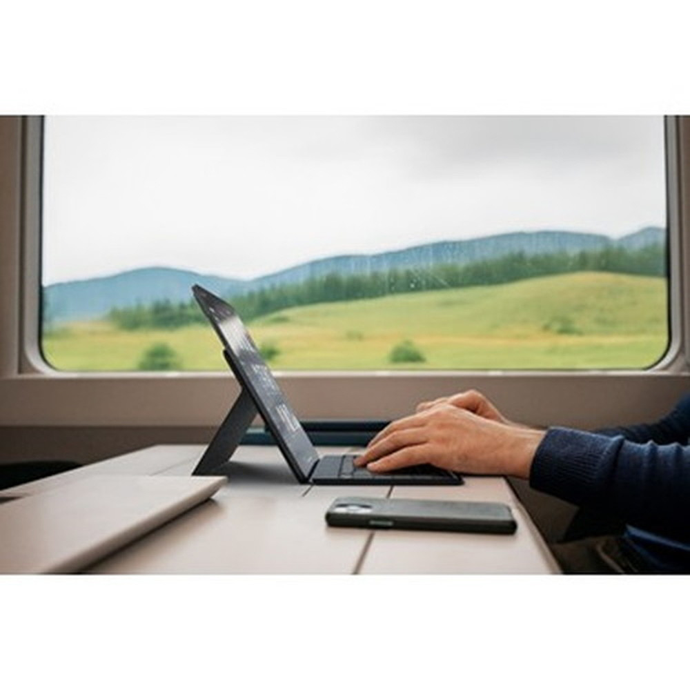 場所を選ばず仕事をするプロフェッショナルのために設計された、コンパクトで持ち運びに便利なタイピングソリューションです。保護カバーは、タブレットやスマートフォン用の頑丈で調整可能なスタンドに変形し、持ち運びやすさと生産性を洗練されたパッケージにまとめ上げます。かさばることなく、効率性を維持するのに最適です。