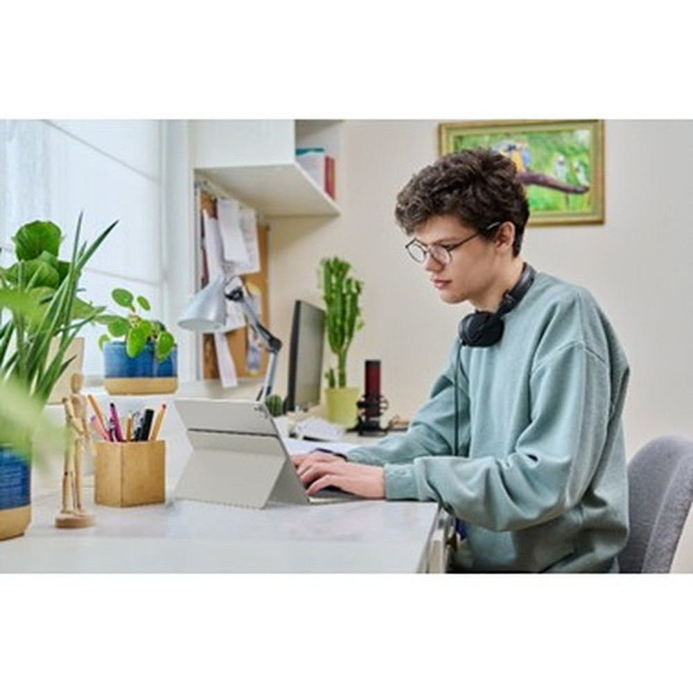 場所を選ばず仕事をするプロフェッショナルのために設計された、コンパクトで持ち運びに便利なタイピングソリューションです。保護カバーは、タブレットやスマートフォン用の頑丈で調整可能なスタンドに変形し、持ち運びやすさと生産性を洗練されたパッケージにまとめ上げます。かさばることなく、効率性を維持するのに最適です。