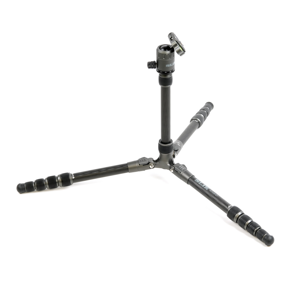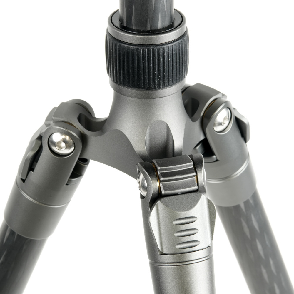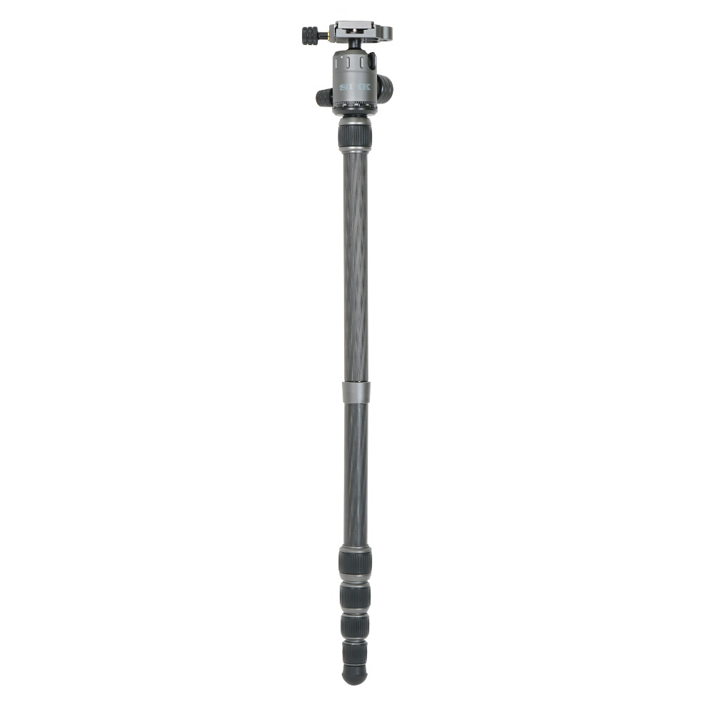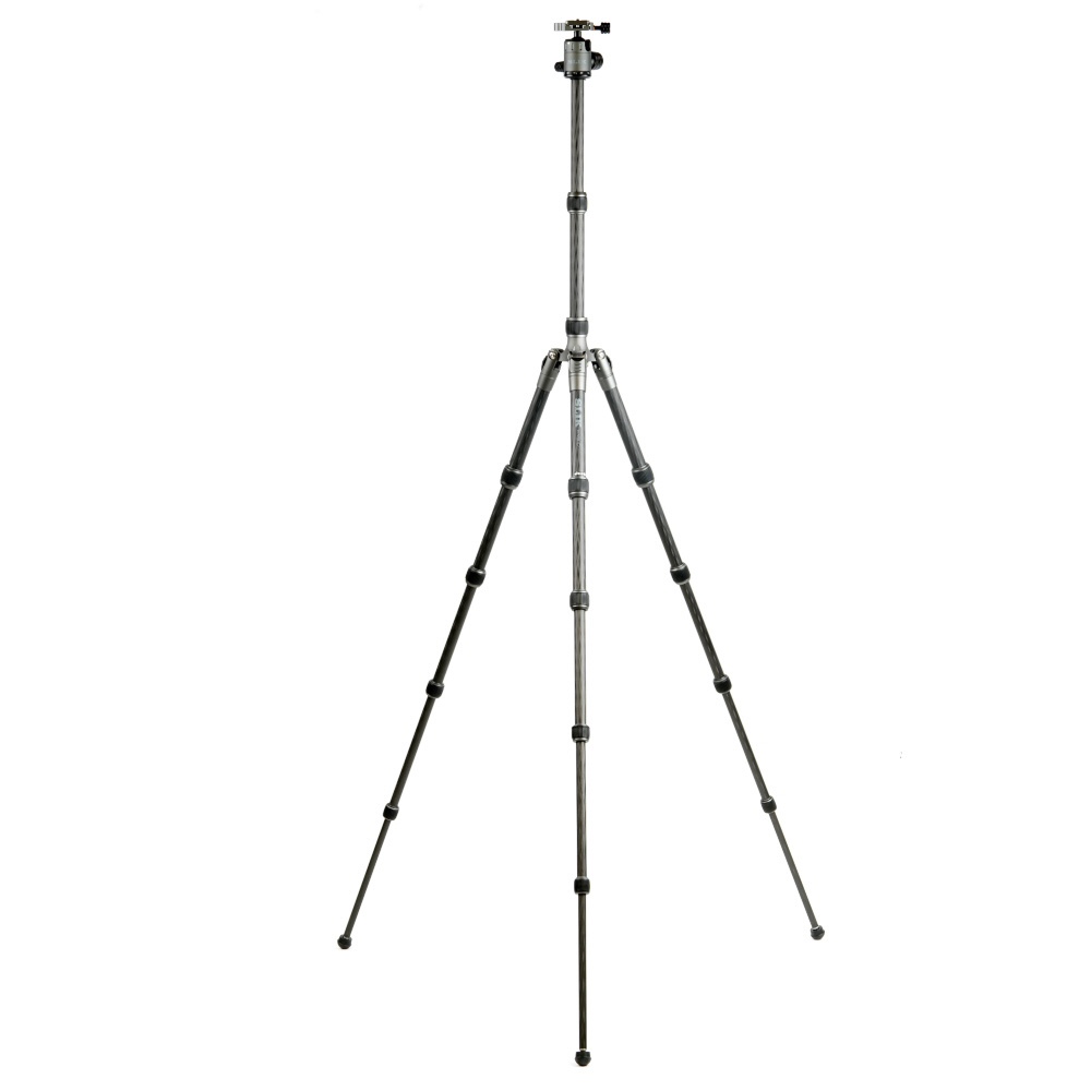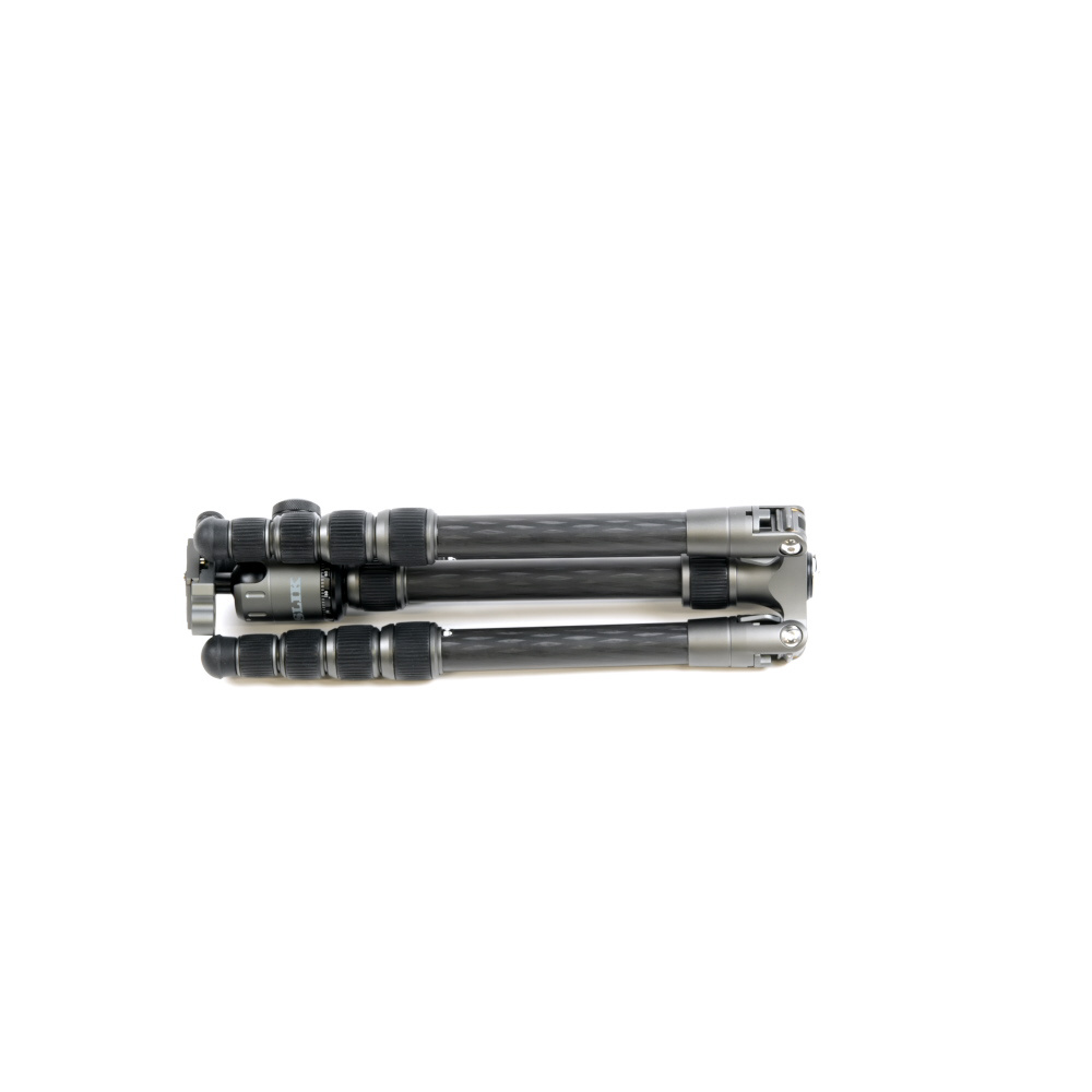 脚が反転収納することで、さらにコンパクトに持ち運べる! パイプ径25mmの中型タイプの5段カーボン三脚です。アルカスイス互換のクイックシューを装備した、セット販売用に設定された自由雲台を装備。脚伸縮は握りやすい大型ゴムローレットナットを採用、さらに空転防止のレール形状のARS(Anti Rotation System)パイプとともに、スムーズな伸縮を実現。この三脚独自の機能として、脚の1本を取り外しエレベーターパイプと接続することで、一脚として使用可能です。エレベーター下部にウェイトフックがあり、荷物等を提げることで重心を提げることができます。三脚ケース付き。