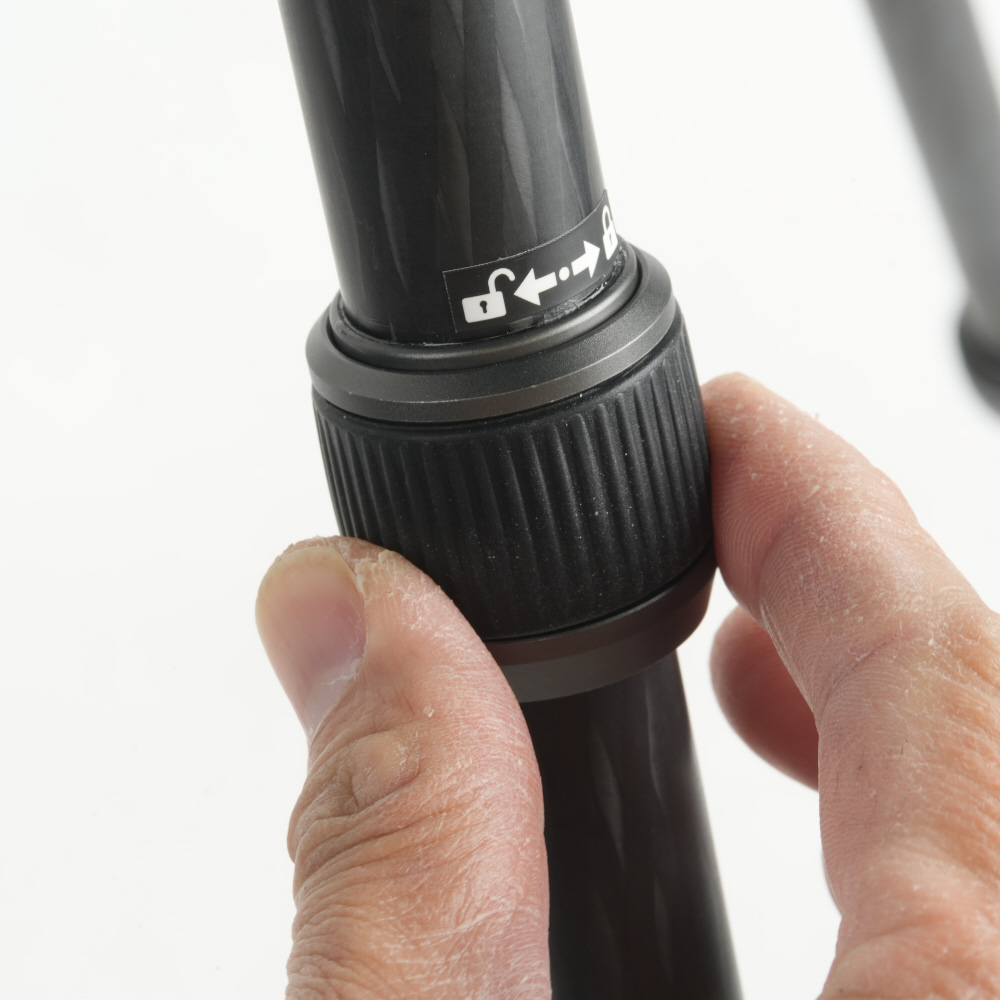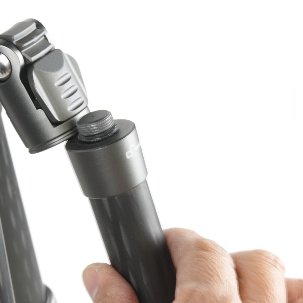 脚が1本外れて一脚に! コンパクトに持ち運べる、5段トラベル型カーボン三脚。