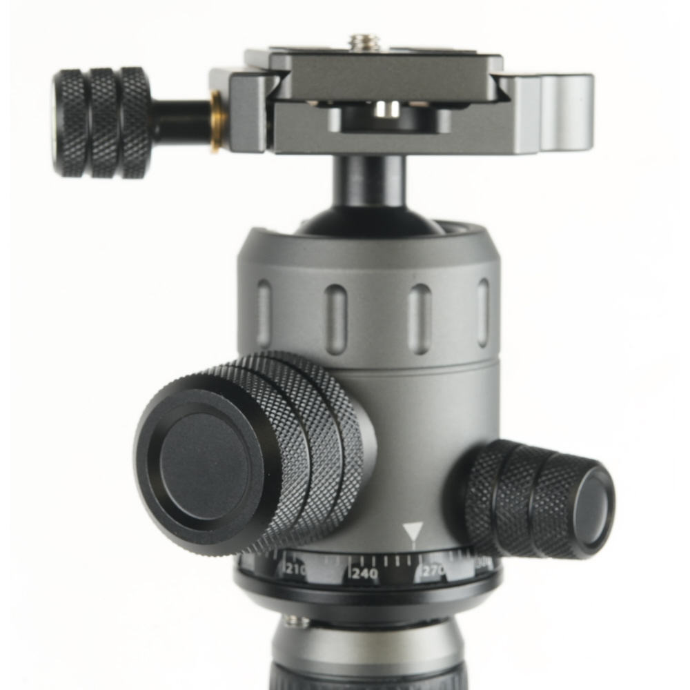 ROVER cでのセット販売用として企画された自由雲台を装備。大きなボール固定ノブでしっかり固定できるほか、ベース部に水平パンの独立回転機構を備えています。