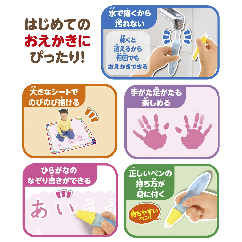 水で描くから汚れない!大きなシートでのびのびおえかきができます!