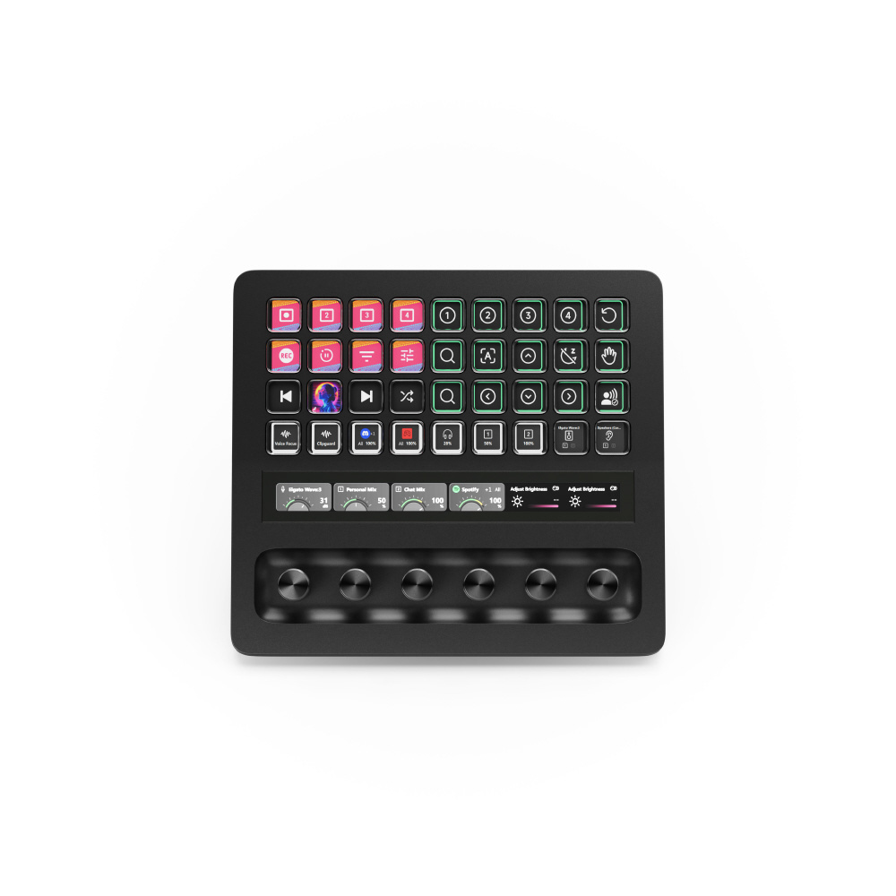 多数のカスタマイズ可能なコントロールとリアルタイム情報モニタリングを備えた Stream Deck + XL は、制作全体やシステムを単一の使いやすいプラットフォームから操作できます。PC や Mac でのドラッグ&ドロップ設定により、DAW からカメラ機器、クリエイティブアプリまで幅広く統合が可能です。