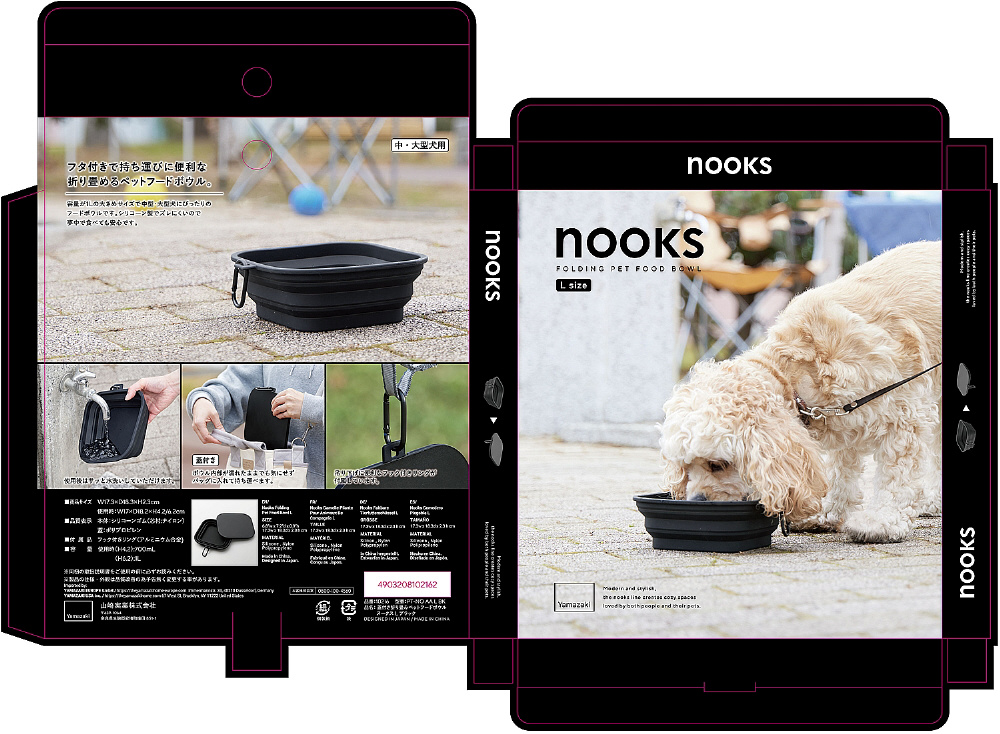 蓋付き折り畳みペットフードボウルヌークスLブラック