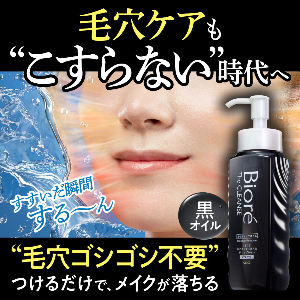 つけるだけ、毛穴のメイクまで瞬浮き!黒オイルが毛穴まで素早く浸透。くるくるなじませずに落ちる!