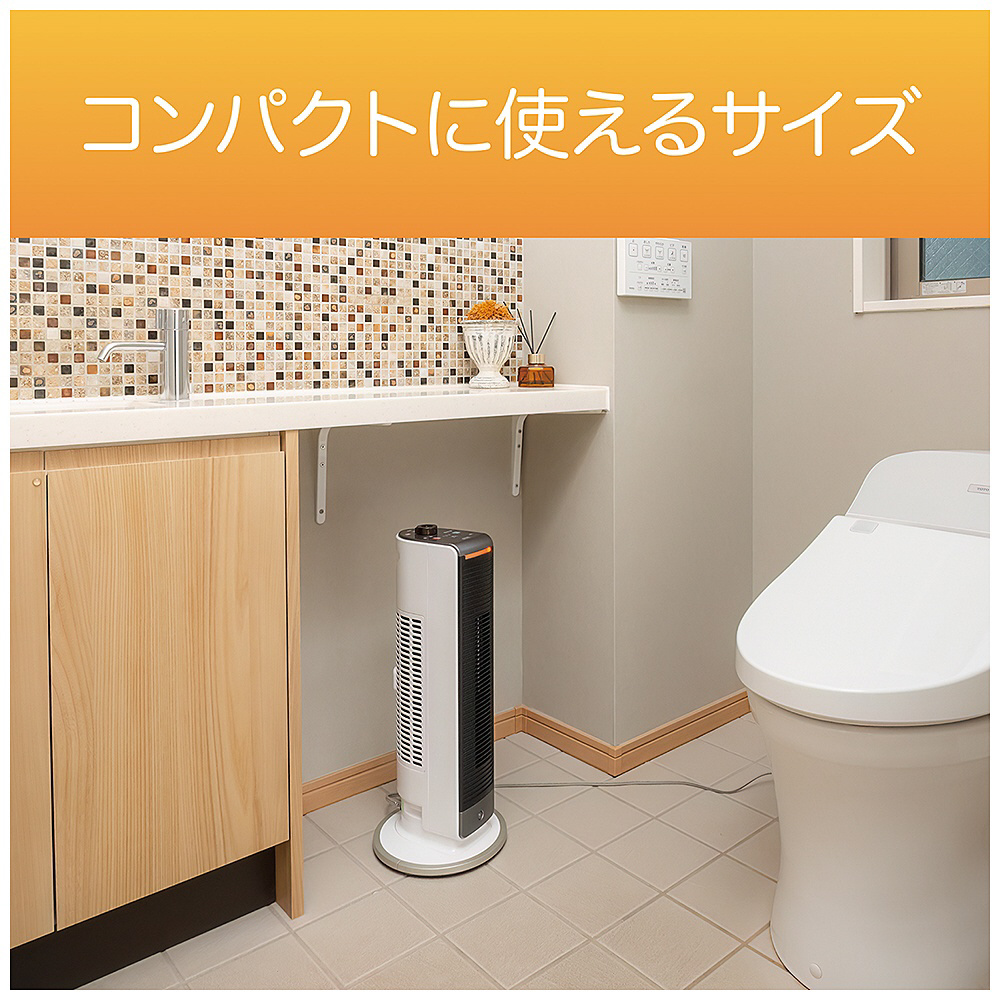 小型タイプのホットアンドクールファン。脱衣所やキッチン、トイレにも置きやすいサイズ。