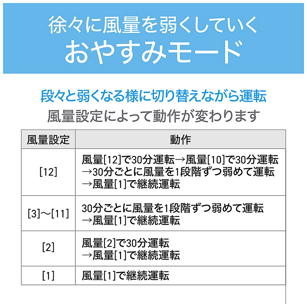 ・オフタイマー:1〜12時間