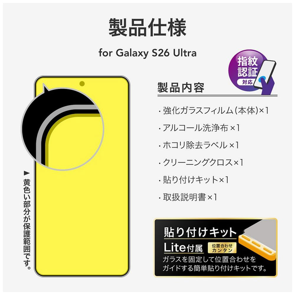 Galaxy S26 Ultra ガラスフィルム 「GLASS PREMIUM FILM」スタンダードサイズ 超透明