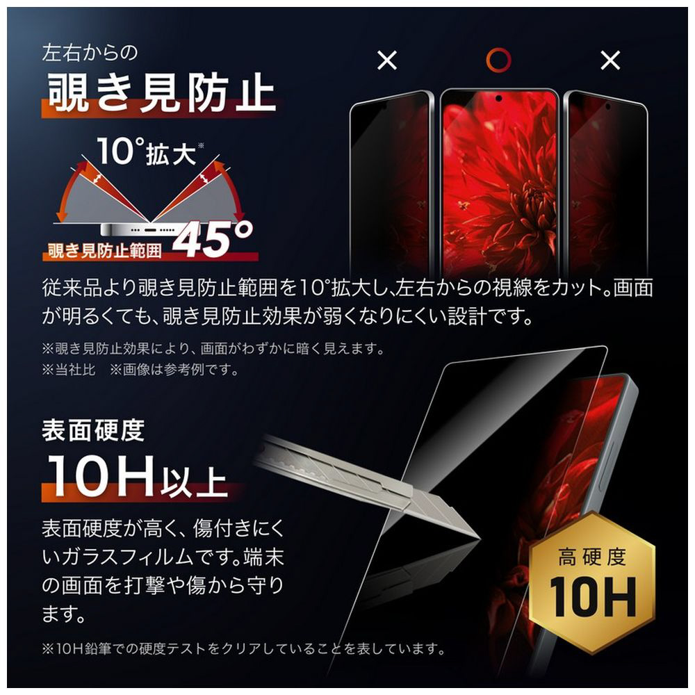 極薄0.25mm/超硬度10H表面強化ガラス/指紋防止効果2倍持続/左右からの覗き見を防止