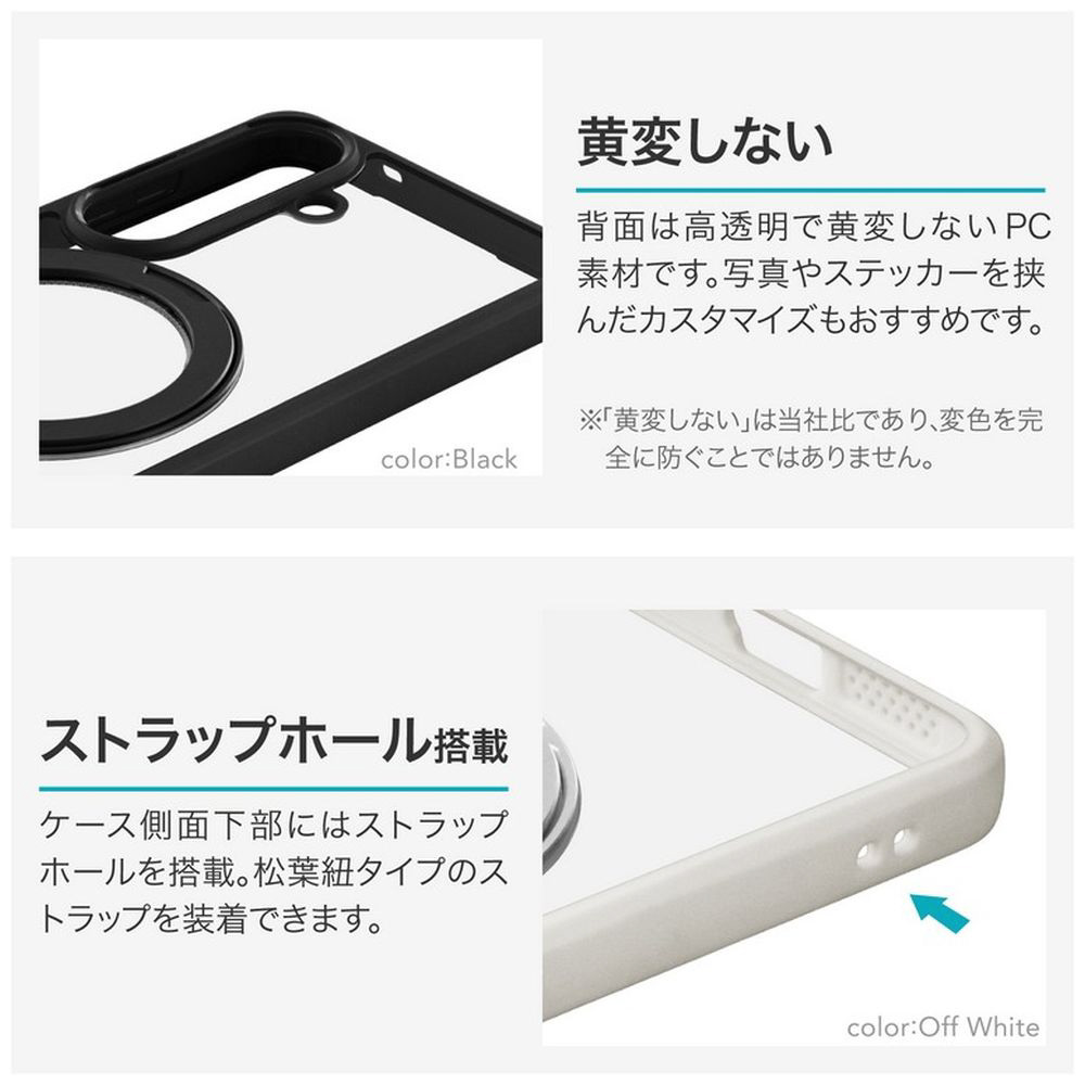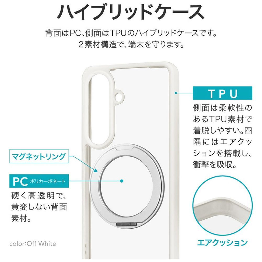 磁気アクセサリ対応/衝撃を吸収するTPUと、硬く高透明なポリカーボネートのハイブリッドケース