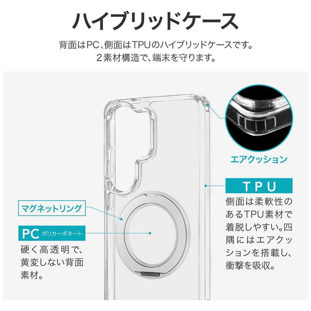 硬く高透明なポリカーボネートと、柔らかく耐衝撃性に優れたTPUのハイブリッドケース