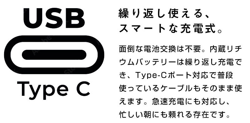 電源:USB充電式(Type-C)