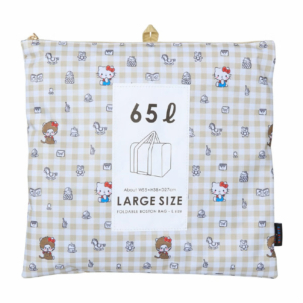 モンチッチ×ハローキティの大容量65Lの大型折りたたみボストンバッグ。スーツケースMサイズと同等の容量です。約3〜5泊のご旅行におすすめ。使わないときはコンパクトに折りたたんで収納し、使いたいときにぱっと広げて使えます。折りたたんで収納する際の収納袋も付いています。