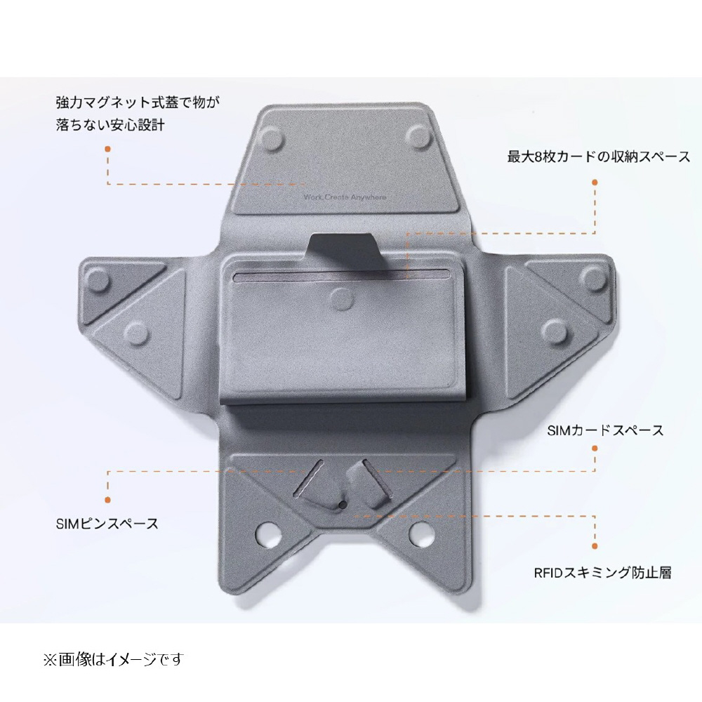 最大8枚のカードをすっきり収納でき、SIMカードの収納スペースも完備。日常生活からビジネス、旅行まで、必需品をこれひとつにまとめられます。