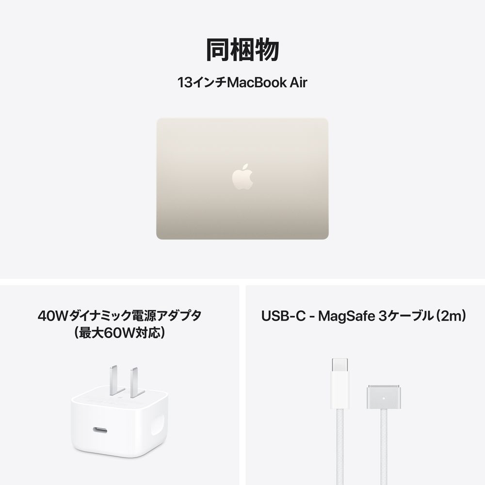 M5 MacBookAir 13インチ スターライト:10C 10C / 16GB / 1TB / USキーボード スターライト CTOMDHC4JA [13.0型 /Mac OS /Apple M5 /メモリ:16GB /SSD:1TB /英語版キーボード /2026年3月]