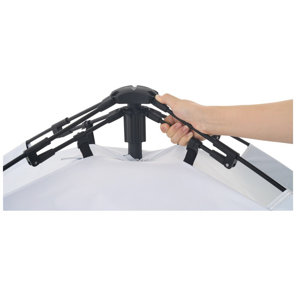 折りたたまれたフレームを広げてロックするだけなので組立て簡単&撤収もスピーディー。